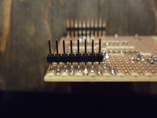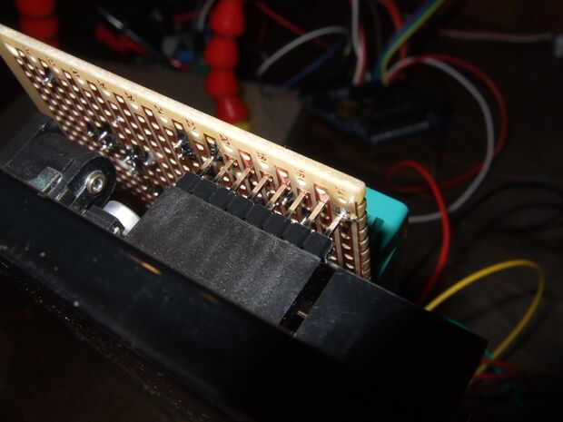Desde abajo viro de los conectores en dos pins con alguna soldadura. Esto me permitió retirar el escudo de Arduino y soldadura correctamente los contactos del conector.