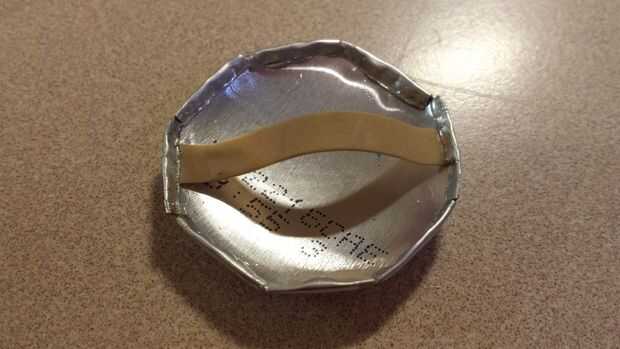 -Coloque un extremo del elástico en una de las solapas abiertas y pliegue la aleta hacia abajo el elástico con un par de pinzas.