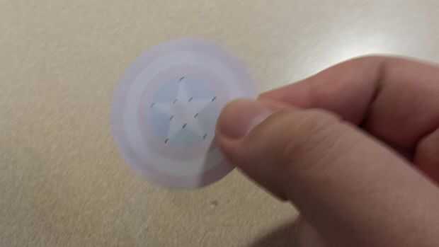 -(Optional) poner un anillo pequeño de pegamento alrededor del borde del diseño mantenga pulsada y asegurarse de que no sale.