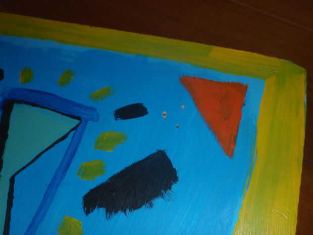 este fue un proyecto fácil, con la ayuda de mi padre, (no hojas de Sierra de calar para mí!) simplemente cortamos la forma, pinté, luego atornillan dos piezas de un viejo cinturón para hacer correas. ¡ Disfrute!