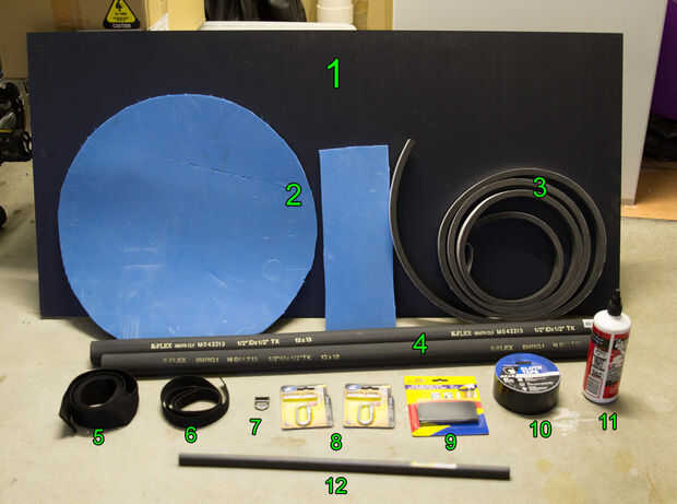 4. componentes de espuma de aislamiento. 2 tubos, 13 mm x 13 mm o 13 x 19 mm. Este escudo terminó usando 13 x 19, pero he utilizado 13 x 13 en el pasado, sólo cabe más ajustado alrededor del borde.