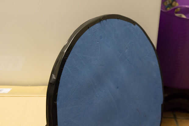 Si usted no lo ha hecho, cortar un círculo de la espuma de 10mm para el frente del escudo. Pegamento a la parte delantera de la coreflute. Añadir un anillo de cinta alrededor del coreflute y espuma. Esto asegura el borde del círculo es seguro y proporciona una superficie sólida para que la espuma adhesivo para pegarse a.