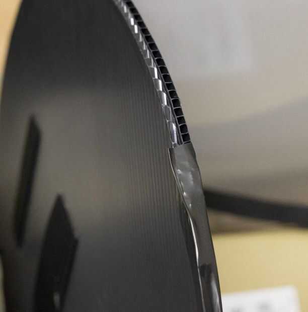Cinta adhesiva alrededor del borde de la coreflute. Esto se hace para cubrir los bordes agudos de la coreflute y detenerlo en la espuma. Puesto que puede ser muy fuerte, probablemente tendrá dos capas de cinta. Si utiliza dos hojas de coreflute, cinta de 25mm de ancho es lo suficientemente ancho, así que corte mi grifo de 50mm por la mitad.