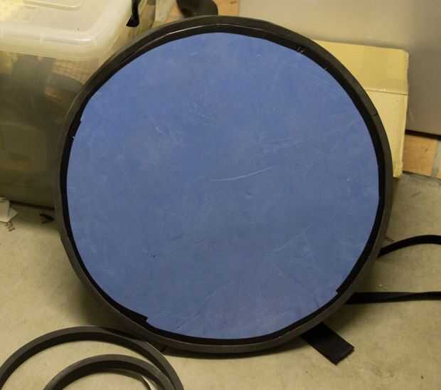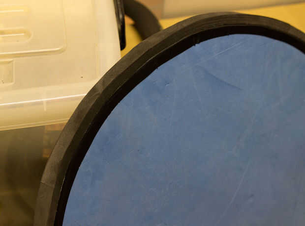 Pegue la espuma adhesiva alrededor del borde del escudo. Diámetro 540mm base requerirá una tira de 1696mm. 550mm de diámetro requerirá 1727mm.