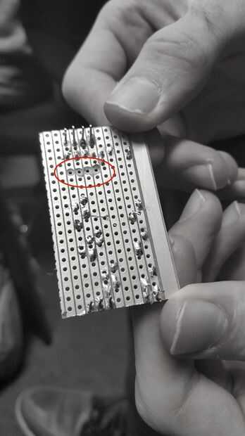 Consulte el diagrama de clasificaciones correctas, asegúrese de que cuando de soldadura que la soldadura no se conecta a las filas por encima o por debajo. Si lo hace, rayar a través del centro de la misma.
