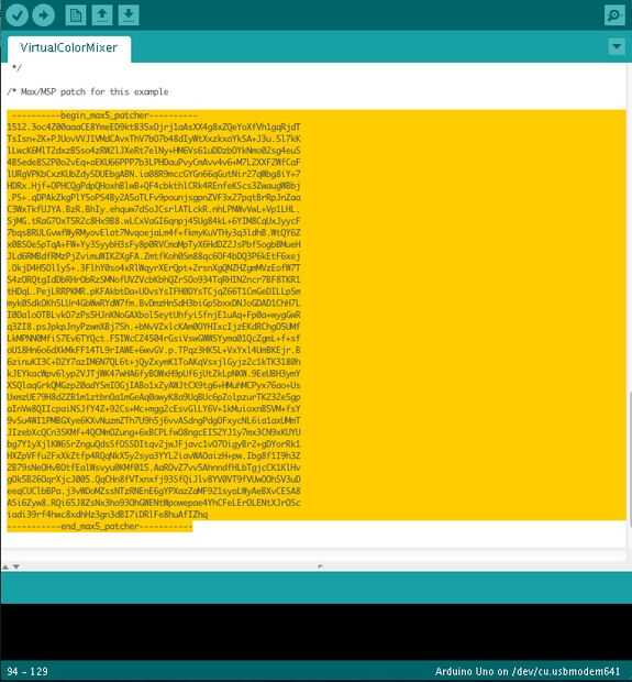 - Abierto Arduino y encontrar el ejemplo que está en archivo > ejemplos > comunicación > VirtualColourMixer