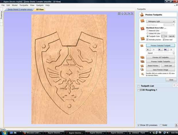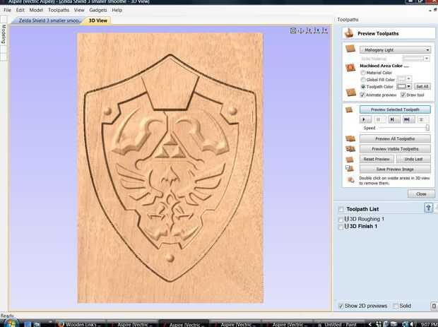 En Aspire, escuchar el desbaste y el acabamiento de talla antes de usar mi panel de madera. Probablemente esto fui al menos 25 veces, cambiando mi modelado. Como dije, no soy experto en esto.
