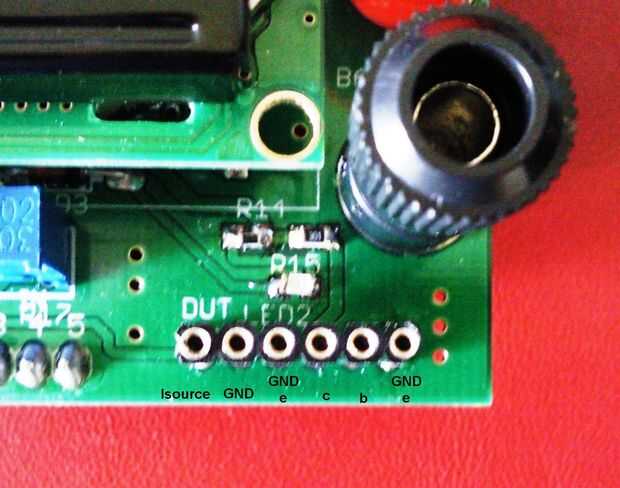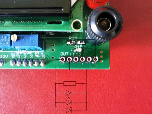 En las imágenes puede verse cómo los dispositivos probados (resistencias, diodos, diodos de Schottky, se insertan LEDS)
