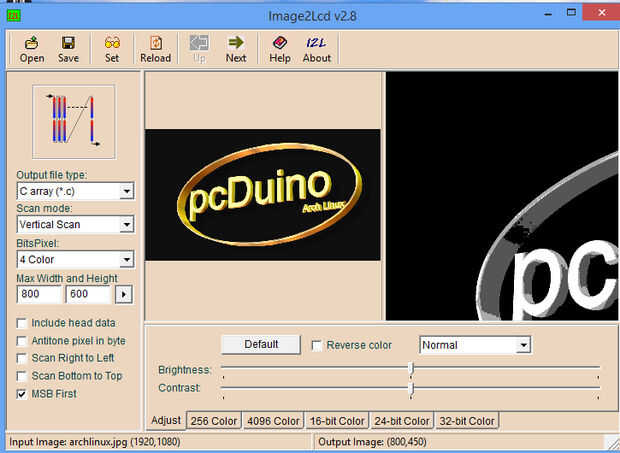 Paso 2 Clink "datos de salida tipo ficha", elegir "C lengua matriz", guarde la imagen como un ls.h de archivo de encabezado de salida ls.h