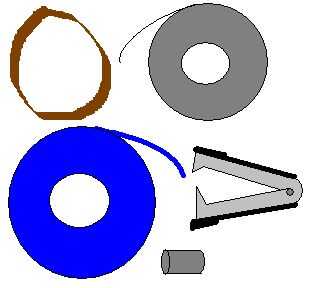 Todo lo que necesitas es una de esas grapas-tomador-outers que parecen bocas, alguna cuerda/hilo de pescar, 2 gomas, algún tubo de medio centímetro de todo tipo de pulgadas de largo y algunos cinta aislante.