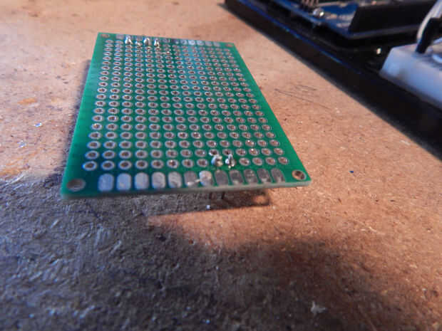 -Mantenerte pins en el mismo lugar y suelde el lado corto de los encabezados de hombres como en la figura 4.