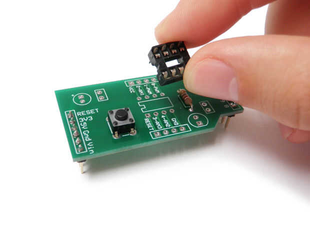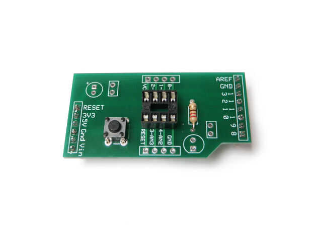 desatar toda la potencia de un Arduino en 10 tipos diferentes de chips ATtiny.El escudo de la cortadora permite que cualquier persona con un Arduino o AVR programador fácilmente programar chips ATtiny. ATtiny fichas son la base detrás de muchos proye