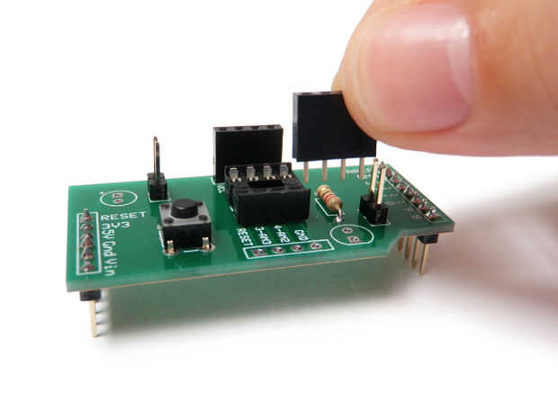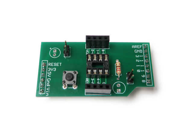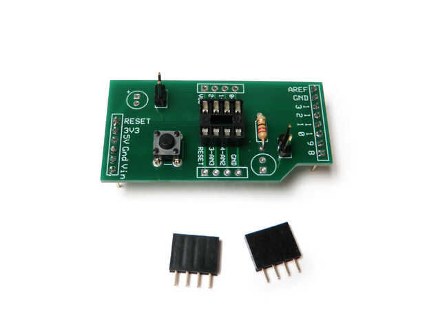 desatar toda la potencia de un Arduino en 10 tipos diferentes de chips ATtiny.El escudo de la cortadora permite que cualquier persona con un Arduino o AVR programador fácilmente programar chips ATtiny. ATtiny fichas son la base detrás de muchos proye