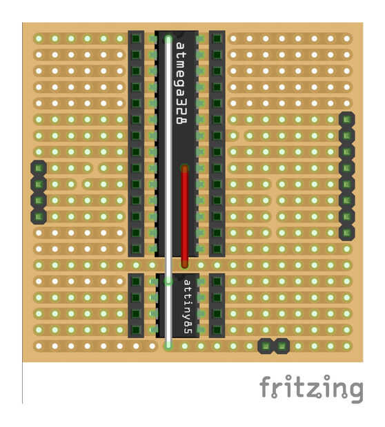Con pasador de 8 pequeños de Atmel AtTiny85 microcontrolador como un independiente es una gran alternativa al más grande pin 28 AtMega328 montada en una placa Arduino Uno. He cambiado de uno a otro por diversos medios, pero lo que me pareció más fáci