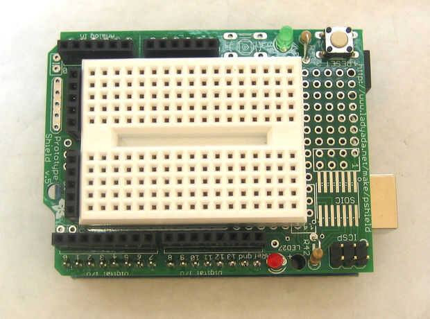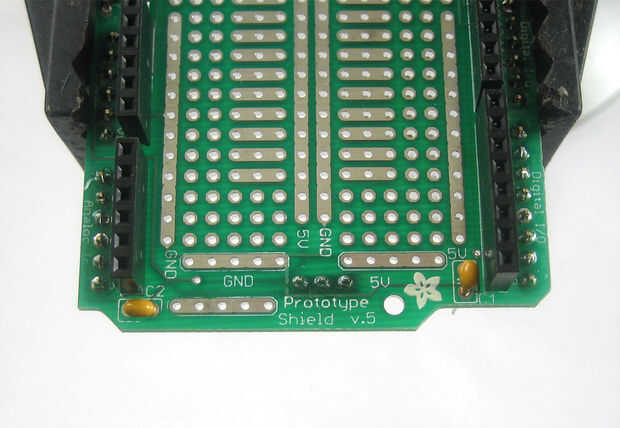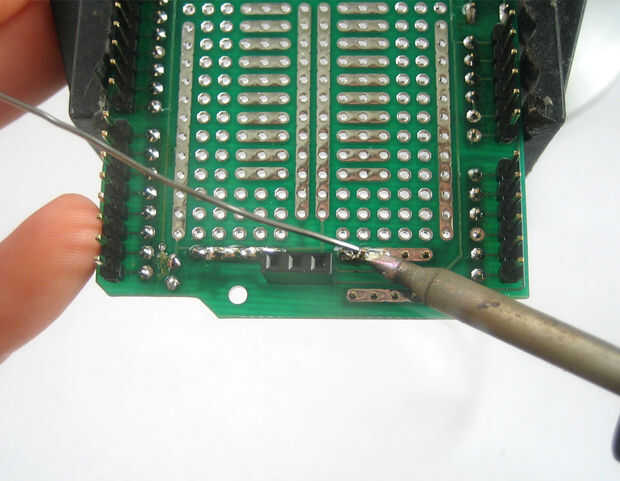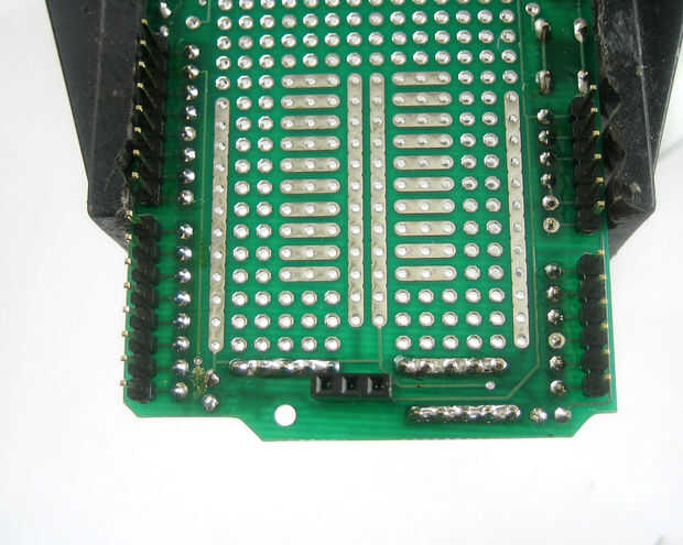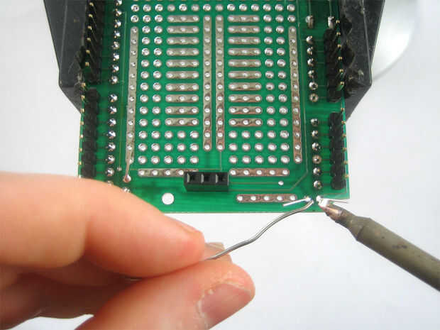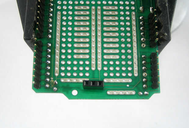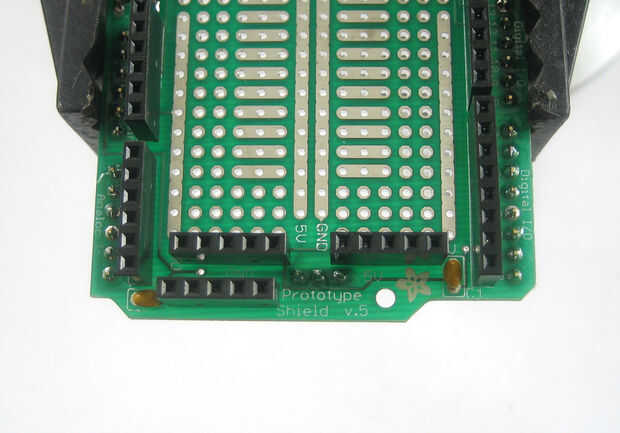 La soldadura en los 3 jefes de hembra de 5 pines. Estos son especialmente útiles si estás usando un protoboard pequeño con el escudo.