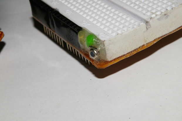 Usé algunos epoxi para cubrir los leds, mantenga pulsado el botón y darle a la junta una superficie lisa.