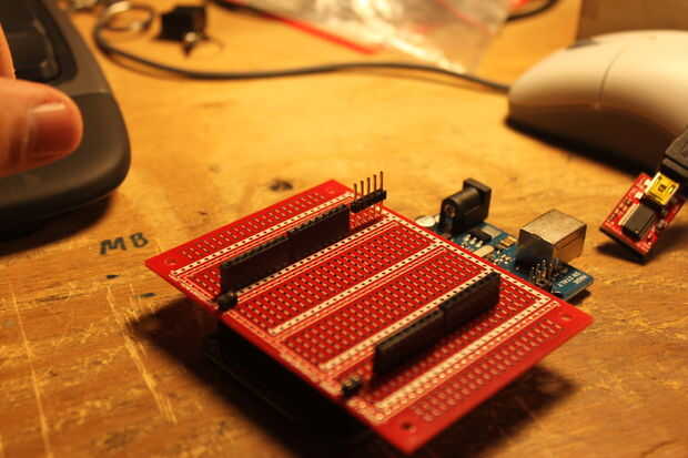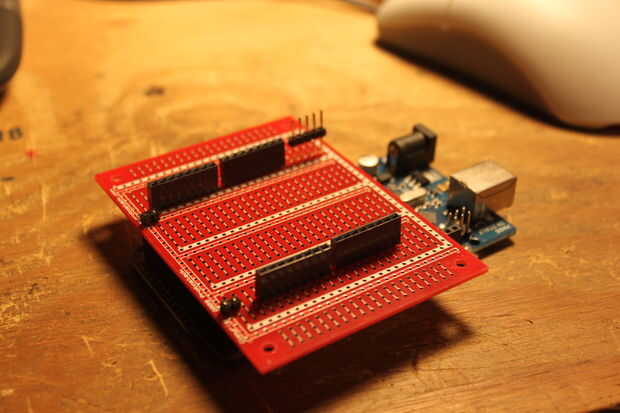se ha escrito esta guía para que le enseñe a montar el escudo de prototipos de diseños de Rob Goddard (www.RGDesigns.co.uk).Este escudo fue diseñado para ofrecer un diseño inspirado protoboard que permite transiciones fáciles al prototipo permanente.