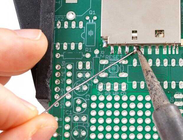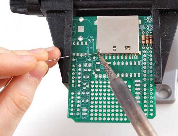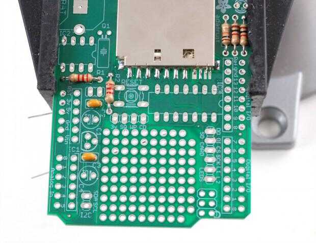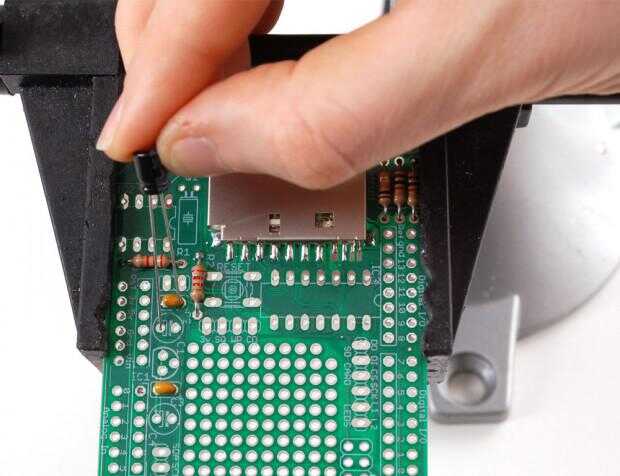 Una vez que usted se siente cómodo con las resistencias, permite hacer el titular de la tarjeta SD. El titular es para montaje en superficie (no hay cables que pasan por el tablero) pero el espacio es muy abundante, por lo que no será difícil.
