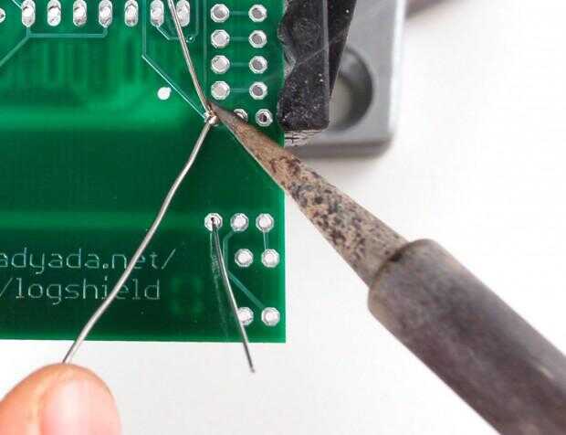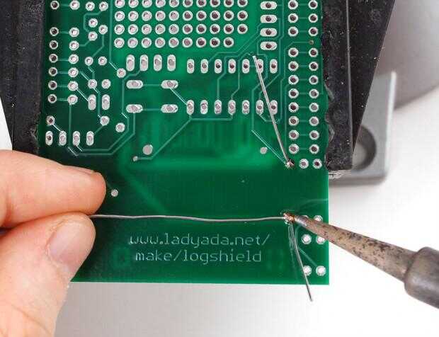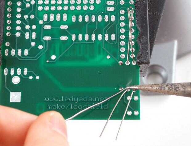 Puede que necesite uno de los pines de soldadura del encaje mientras lo sujeta que con un dedo (o cinta) las piernas no son lo suficientemente largos para doblarse en el lugar.