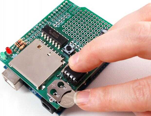 La toma es para proteger el chip del reloj y lo que es fácil de insertar y quitar. Desafortunadamente, cada a menudo no debe quitar que significa que poner esta parte no es siempre preferible. Si el loggershield va a ser utilizado en un lugar donde puede ser noqueado el chip, puede que desee omitir la toma y a soldar el chip en