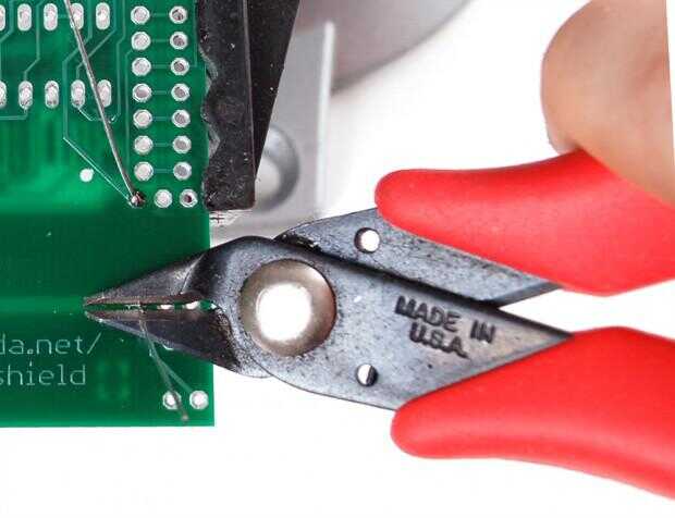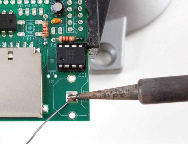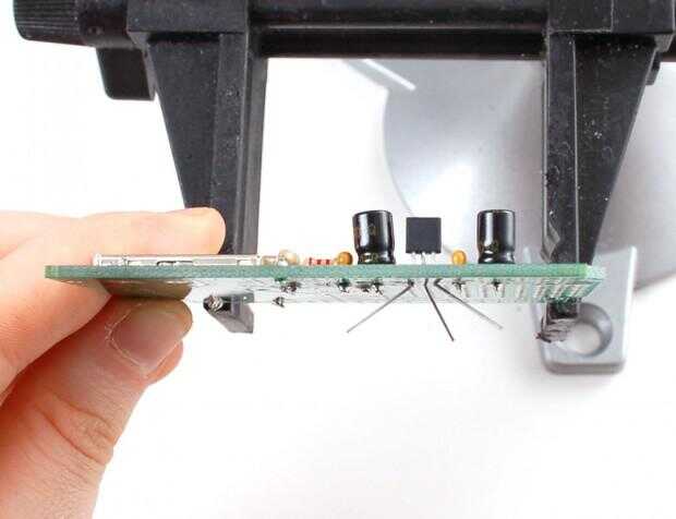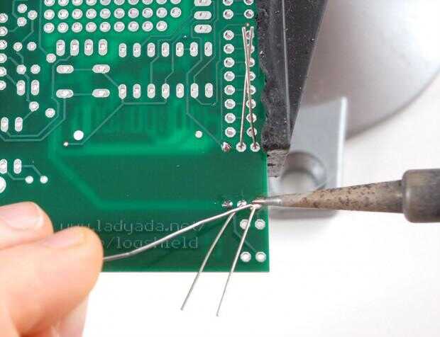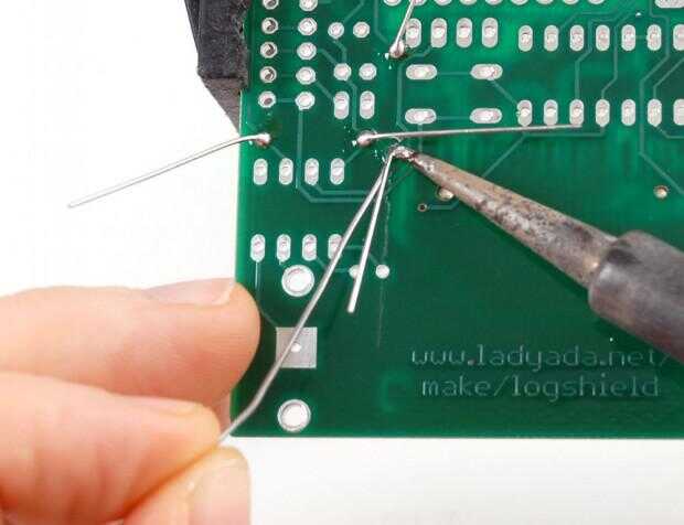 Doblar hacia fuera los cables como las resistencias para mantenerlos plana contra el PCB