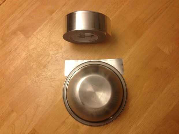Volver a usar la taza como una herramienta de trazado, corte y coloque cuatro pedazos de la cinta brillante. Coloque el recipiente sobre él para que eso tazón de fuente bastante no toque la parte superior. Trace una línea alrededor del recipiente y cortar las formas. Estos se utilizarán más adelante.