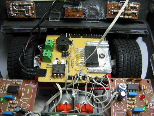Se controla con 4 pines PWM. Las conexiones son: 11 y 10 para el Motor de R y 6 y 5 para el L-Motor. Con la ayuda de ocho diodos de recuperación rápida (1N4937) muestra una respuesta muy rápida de parada y frenado, por eso voy a utilizar para la competencia de SUMOBOT nacional.