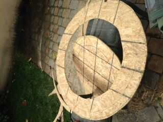 Una vez que termine la retire del círculo del círculo interior. Luego tomar la otra tabla y coloque el círculo externo sólo corte y coloque en el tablero y trace una línea alrededor del borde del anillo de madera con un crayón. Entonces usando la cadena de uñas y lápiz Haz un círculo más pequeño por una cerca de 6 pulgadas. Una vez que junta como dos círculos dibujados en él utilizan el taladro para hacer un agujero pequeño en el círculo y cortar alrededor del círculo interior.