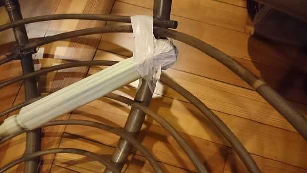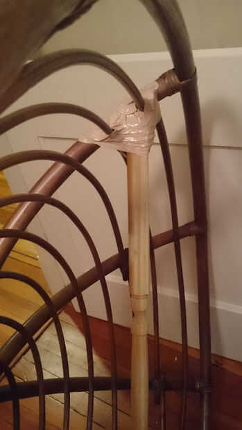Como se muestra en las fotos, puse 36" antepecho para abarcan tres de los ocho segmentos de la estructura y asegurar ambos extremos con abundante cinta aislante.