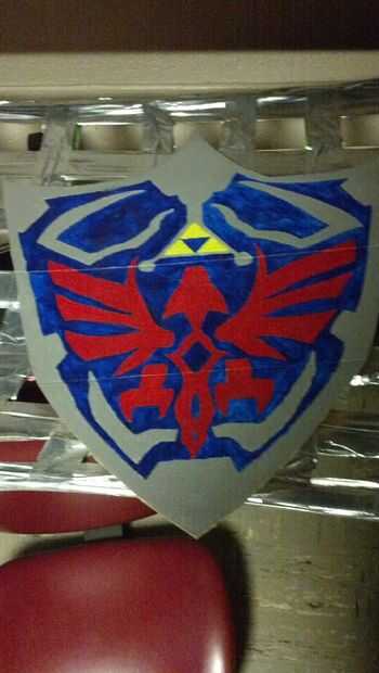 cuando lucha contra Ganon, un verdadero héroe necesita un escudo...Materiales:-2 tableros de madera-Sculpy arcilla-Pintura en aerosol-Herramientas (Sierra, Dremel, taladro)Paso 1: Base y estructura La Base del escudo hyliano está hecha de dos partes,