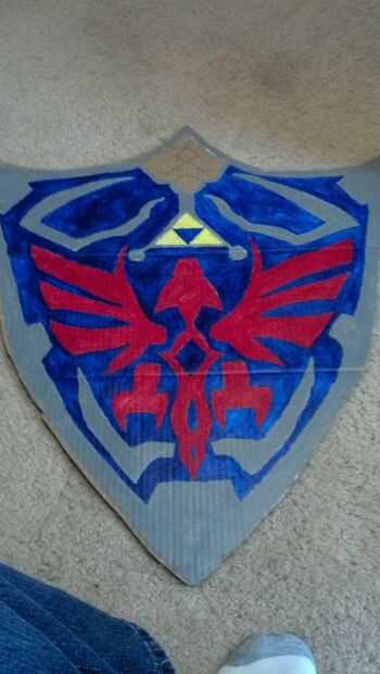 cuando lucha contra Ganon, un verdadero héroe necesita un escudo...Materiales:-2 tableros de madera-Sculpy arcilla-Pintura en aerosol-Herramientas (Sierra, Dremel, taladro)Paso 1: Base y estructura La Base del escudo hyliano está hecha de dos partes,