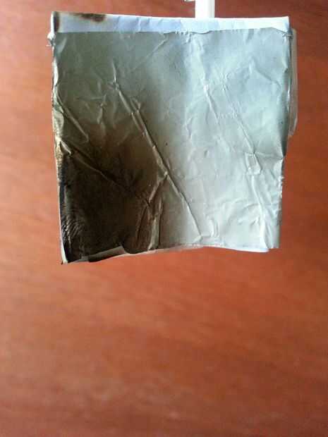 Envuelva el papel con un trozo de papel de aluminio y cinta adhesiva los extremos de la hoja en la parte posterior. Significado de la cinta la hoja al papel sin exponer la cinta y el papel al fuego. Que no cubro correctamente haciendo que el papel quemar un poco.