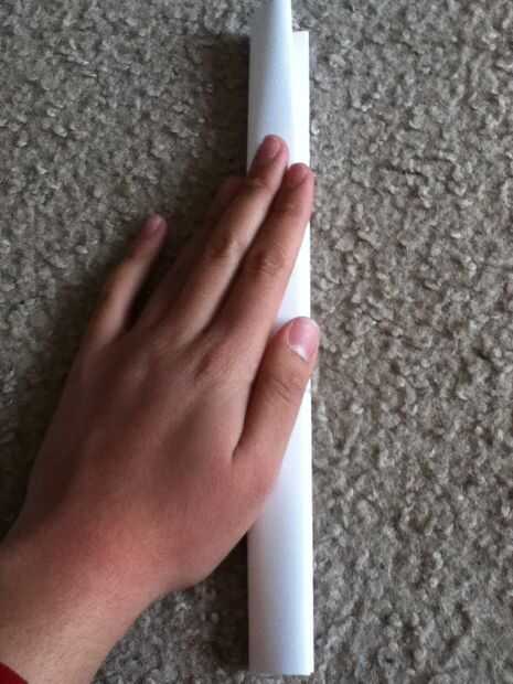 es fácil de hacerPaso 1: hacer la empuñadura, capa de sólo unos papeles, unos 36, capas para las base y 16 capas para el diseñoPaso 2: superposición de popsicle palos para hacerla más fuerte, haría unos 2 capas cada ladoPaso 3: cubrir para arribaPaso