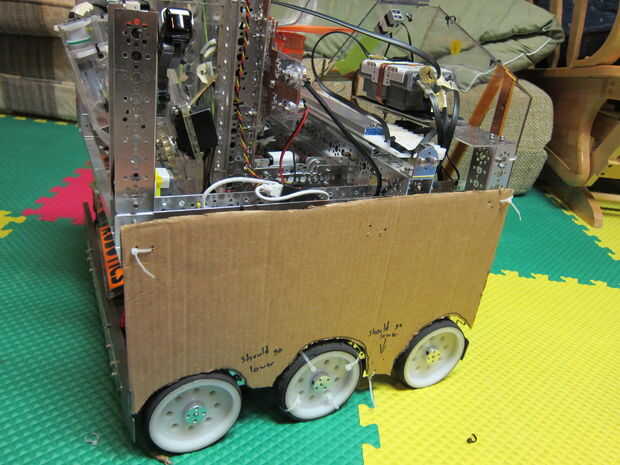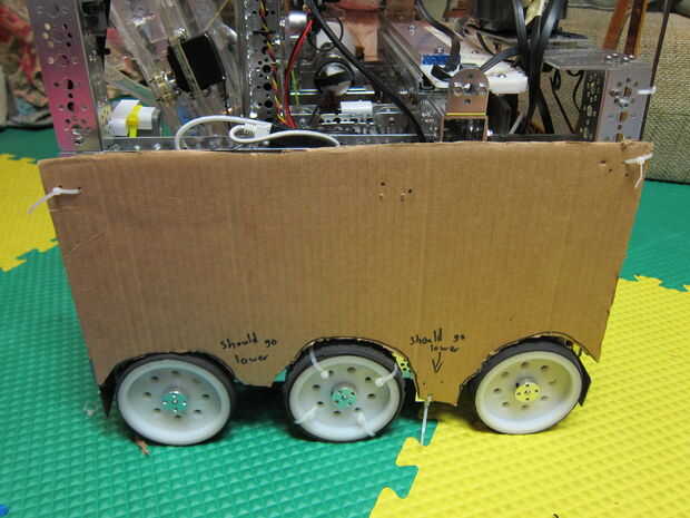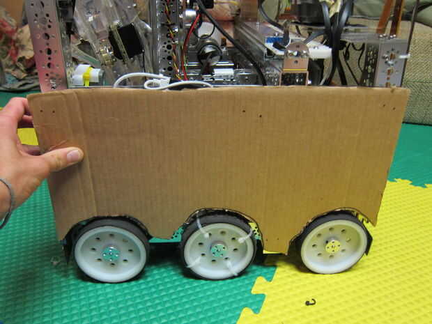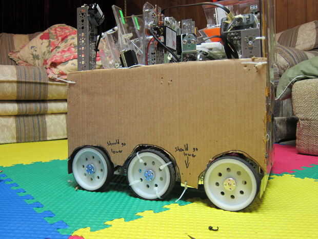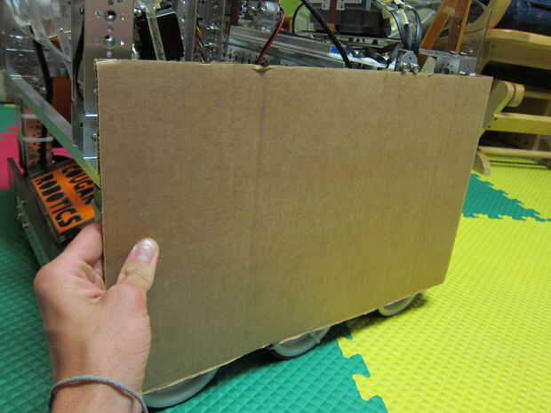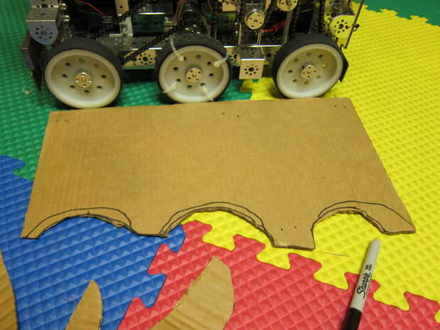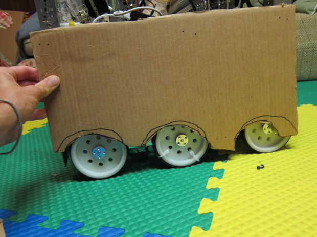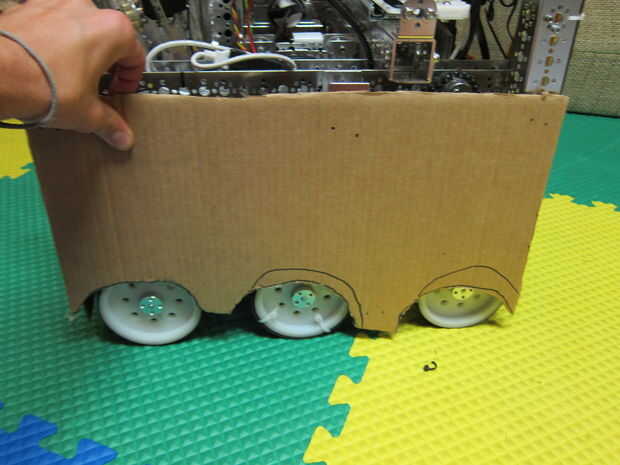 Nota: hemos visto protectores de cartón en robots antes y funciona. No puede parecer bastante, pero para áreas de bajo impacto con un presupuesto muy ajustado, cartulina puede hacer el trabajo bien.