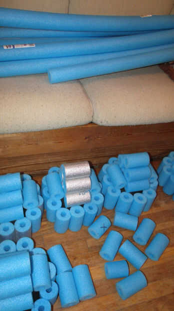 Esto utiliza un total de 20 rulos por corona. Tallarines de la piscina son de 48 pulgadas de largo y cada uno rinde 12 4" rulos. Permite 2 fideos por sombrero "oopsy" subsidio al medir y cortar.