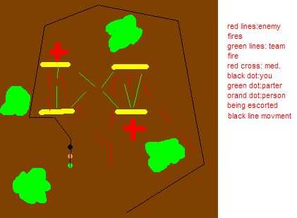 Bienvenidos a la última clase hasta la prueba de graduación. nos hablará sobre escoltando a tus compañeros de equipo y el último tema de emergenceys. vamos a escoltar. Cuando escoltaba le debe estar preparado para cualquier cosa incluso que cortar. pero permite iniciar en una táctica simple que me gusta llamar "parar, caer y refugiarse! mi pic es la táctica. ahora a emergancys3 (la política de 1 min-no ayuda). Cuando encuentras a alguien y señal ayuda si no médico es aquí en 1 minuto entonces usted tiene que ayudar a los heridos su auto. usar el reloj para ver la hora. pues si tienes la táctica por entonces...
