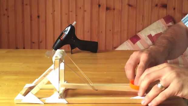 Bien hecho, haya terminado! Dan su catapulta una corridas de seco, apoyando la base con una mano y tirando hacia atrás el brazo de tiro con el otro. No tenga miedo de realmente dejar volar!