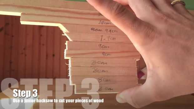 Utilizar su sierra para marcar y cortar las siguientes longitudes de madera para el marco: