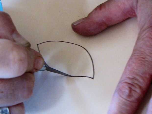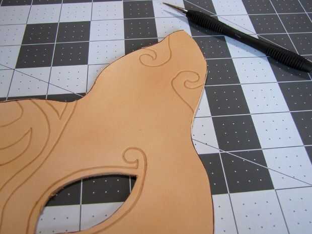 Extienda su piel y decidir que parte a utilizar. Coloque su patrón de papel sobre la piel y el contorno de ojos con el rotulador de tinta con cuidado. Utilizar los ojos como una guía para asegurarse de que no muevo el patrón. Luego la tinta el contorno de la máscara. Cortar la sección del cuero de la piel para que sea más fácil trabajar con. Utilizar tijeras de cuero para esto. A continuación, con mucho cuidado recortar su contorno y los agujeros para los ojos con su cuchillo. Te recomiendo cortar los ojos desde el ángulo interno al externo. Es mejor volver a las esquinas con su cuchillo para extraer cuidadosamente el cuero "ojos" que a más de cortaban y arruinan su máscara.