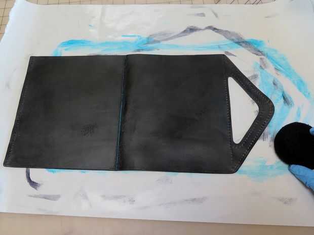Pensé que el caso de la tableta se vería bien en un esquema de color de dos tonos. Usé Waterstain color turquesa en la capa externa y Waterstain negro en la capa interna. También me aseguré teñir los bordes y la parte inferior de la capa externa donde sabía que sería visibles.