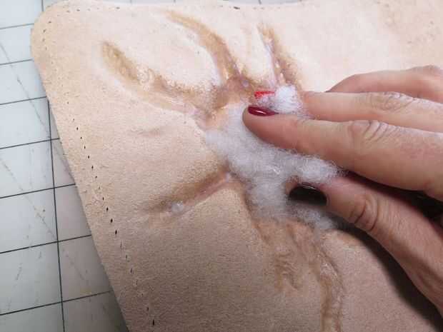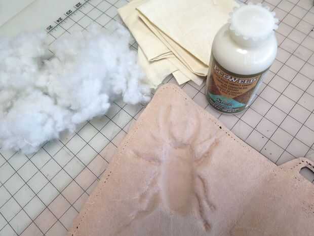 Quería llenar el espacio hueco dentro de mi formas de error esculpido con algo para impedir que se aplaste, lo llenó con almohadilla de relleno y había pegado los círculos de la tela sobre ellos. En retrospectiva, creo que sería mejor usar algo más sólido, como el endurecimiento de la espuma en aerosol, pero el relleno darles algún apoyo extra.