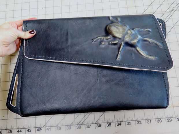 Minimalista en él otra vez. Como un gran fan de un diseño simple, fuerte, llamo mucha inspiración de los artículos de cada día. En este caso (ver lo que hice allí), un envolvente de cierre botón y cadena. He hecho varios sobres embragues y casos y de