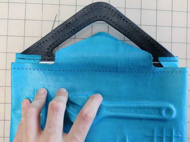 Resultó que, cuando lo probé en este punto, que no era muy apropiado lo que quería. La aleta no era suficientemente largo para cubrir la parte frontal de la tableta, y no me gustó la forma en la capa interna hacía el montón de cuero en la tapa. No quería descartar la pieza, así que hice algunos ajustes sencillos que fija los problemas.