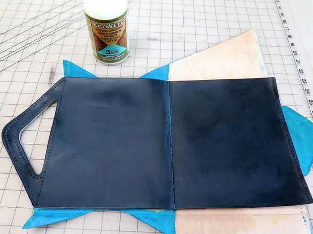 Para comenzar a armar mi caja de pastilla, pegan los mangos de las capas internas y externas primero revisar para ver cómo estaba encajando el resto junto con la pastilla dentro. Porque este patrón tuvo que encajar exactamente para sostener que la tableta en correctamente, que era difícil decir si iba a funcionar todo bien antes de montar en cuero.