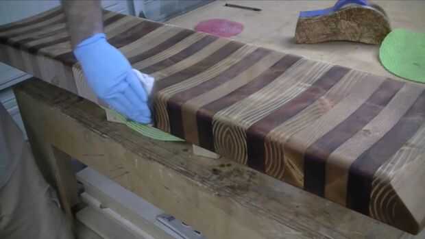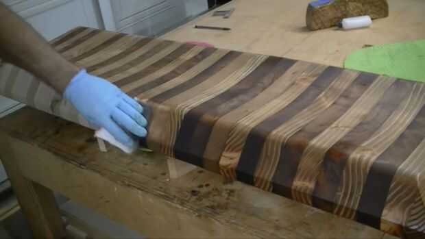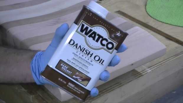 Elegí oscuro nogal aceite danés para el asiento de color. Me gusta cómo el oscuro aceite se empapa en el grano más suave del abeto de douglas. Aplicar el aceite simplemente vierta sobre la superficie y frotar con un paño de algodón. Espere 15 minutos para que absorba y limpie el exceso. Es así de simple. Ahora espere 24 horas para curar y aplicar el acabado de su elección.