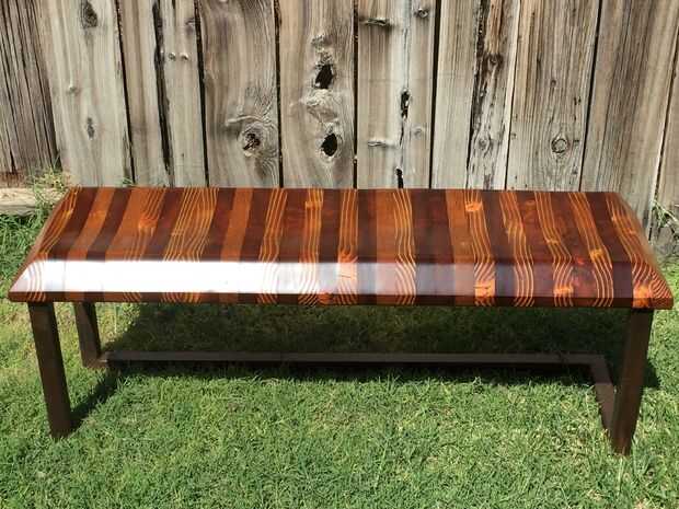 Este impresionante aspecto vivo borde mesa se realiza mediante una losa de madera y algunos barra acero que doblado en forma plana, soldadura no involucrados. Hay así que muchos fresco mirando las losas que hay para escoger en diferentes colores, tam