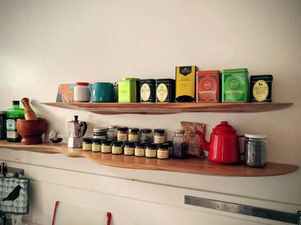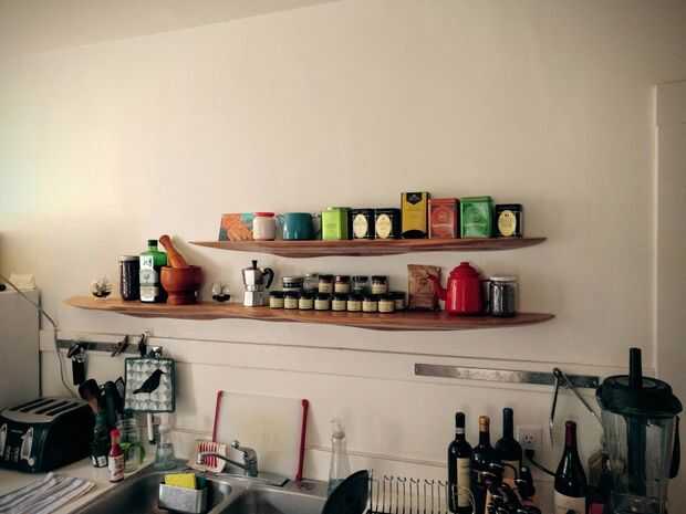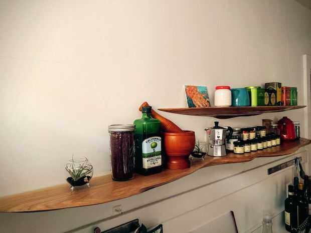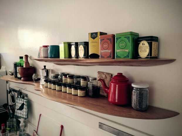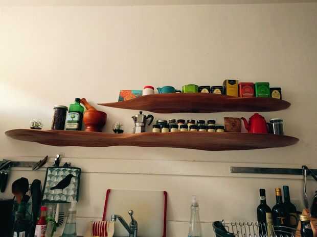 Usé de roble blanco para los estantes. Me encanta qué tamaño tienen sus poros y textura cómo es al tacto. También no como comúnmente se utiliza como su primo roble que lo hace un poco más único.