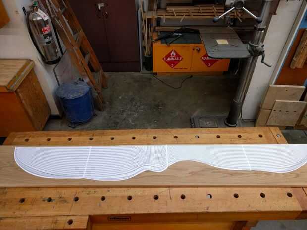 Para seguir el mismo enfoque, que necesitaba para "picar" mi modelo para crear plantillas para cada capa. Hay un equilibrio en esto: cuanto más gruesa las capas, el menos pegamento-ups necesito ir, pero el más caro la madera y la baja fidelidad (más gruesa) que llegaría a la forma original. La más fina, más precisa la forma sino también el esfuerzo más en fresado y encolado de cada capa.