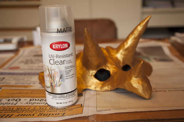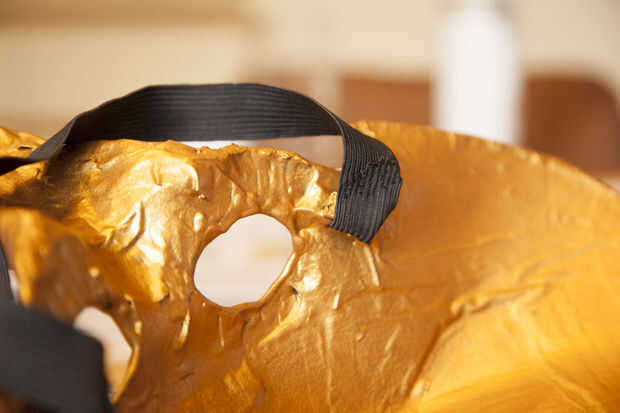 Pintar tu máscara sin embargo te gusta. Estaba inspirado por el aspecto rugoso de oro golpeado de la máscara de la muerte de Agamenón, por lo que utiliza una capa de negro seguida por unos escudos de oro metálico caliente, aplicado con un pincel de esponja. El oro que usé es oro veneciano del oro a la serie de Dazzling Metallics de DecoArt, en caso de que se lo pregunte.
