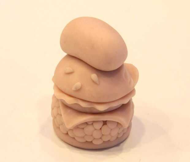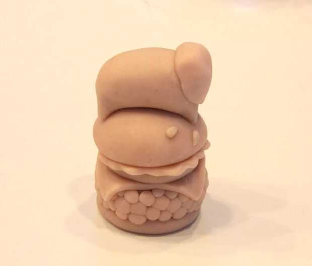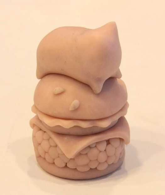 La técnica utilizada para la escultura del gato se remonta al concepto de dibujo de historieta comenzando con forma de frijol. Piernas fueron pellizcadas por las esquinas de la haba, y una bola fue smooshed encendido y pinchado para hacer una cabeza y orejas. Para unir la cabeza al cuerpo perfectamente, yo primero alisarlo tanto como yo podría con mi dedo y siguió con un cepillado de alcohol.